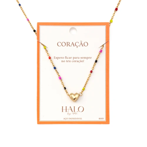 COLAR AÇO CORAÇÃO COM MISSANGAS 12,90 € Desconto de %. IVA incluído. Partilhar O produto encontra-se sem stock. Colar em aço com pingente em coração dourado e corrente em aço com missangas coloridas. Marca SB