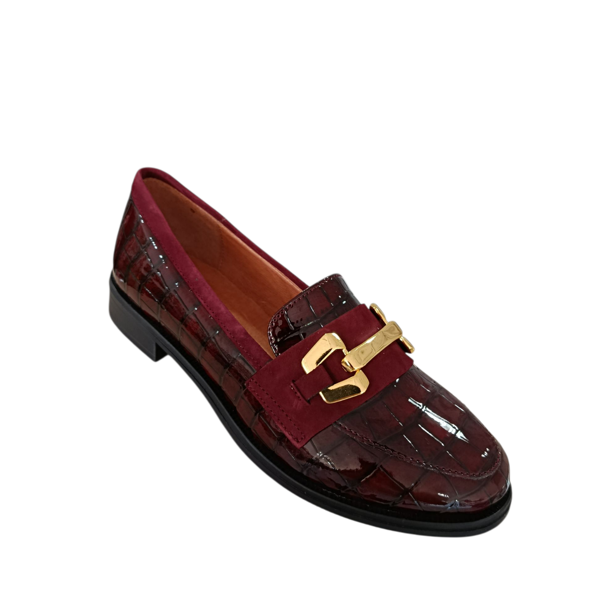 NOBLE CF3167 BORDÔ 35,94 € 59,90 € Desconto de 40%. IVA incluído. Partilhar TAMANHO 35 36 37 38 39 40 Comprar Contactar SALE40. Válido de 2 de Março de 2026 às 00:00 até 31 de Março de 2026 às 23:30. Sapatos para senhora estilo mocassim. Fabricado em pele, com pormenor metálico na parte superior. Sola em borracha que proporciona o máximo conforto. Composição: Exterior pele Interior pele Sola outros materiais Marca NOBLE Características