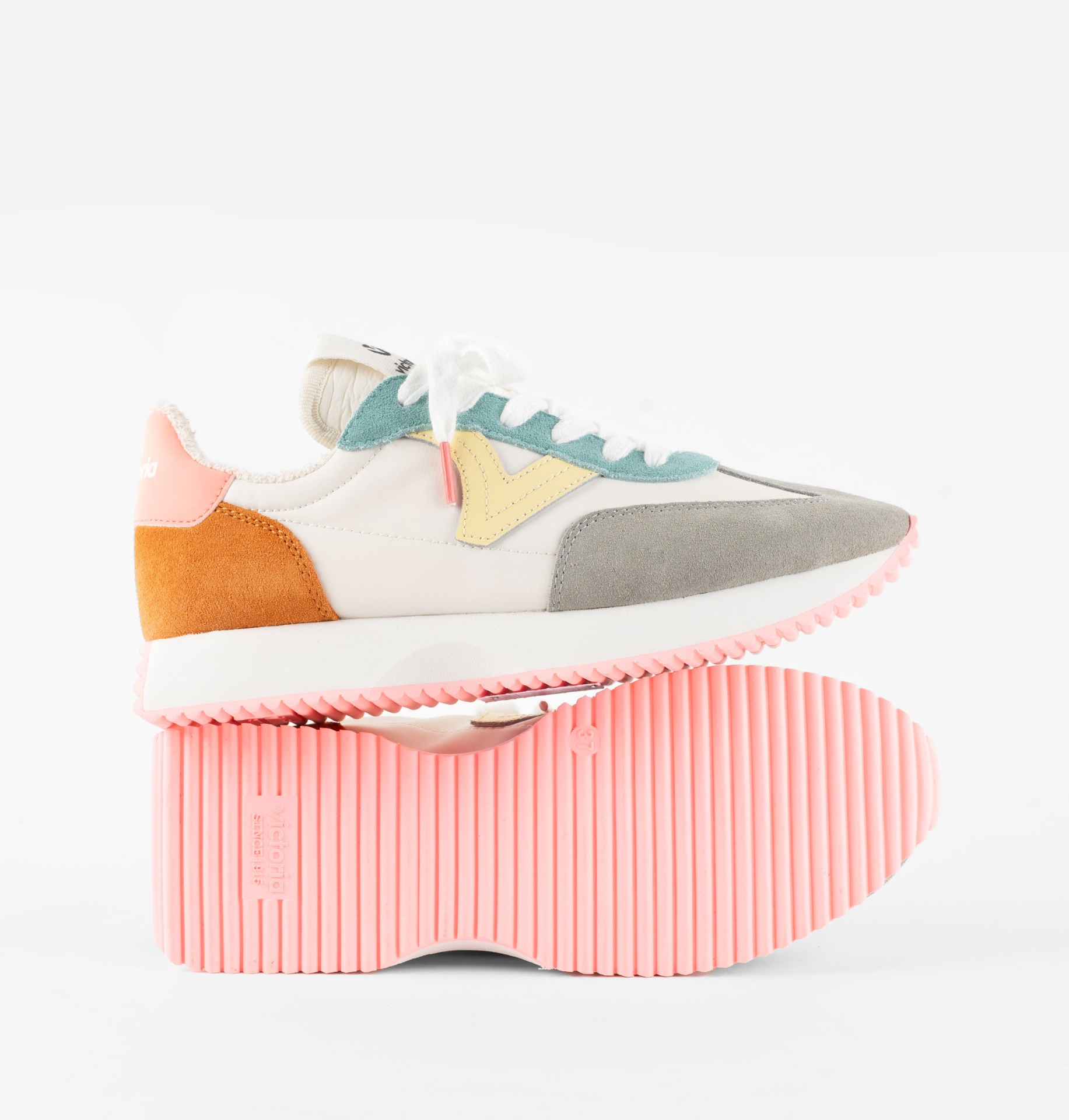 VICTORIA 134113 CORAL 34,95 € 69,90 € Desconto de 50%. IVA incluído. Partilhar O produto encontra-se sem stock. SALE50. Válido de 2 de Março de 2026 às 00:00 até 31 de Agosto de 2026 às 23:30. Sapatilhas multicoloridas para mulher, ultraleves e confortáveis, perfeitas para o dia a dia. Composição: Exterior pele, textil e sintético Interior textil Sola EVA e borracha Marca VICTORIA Características