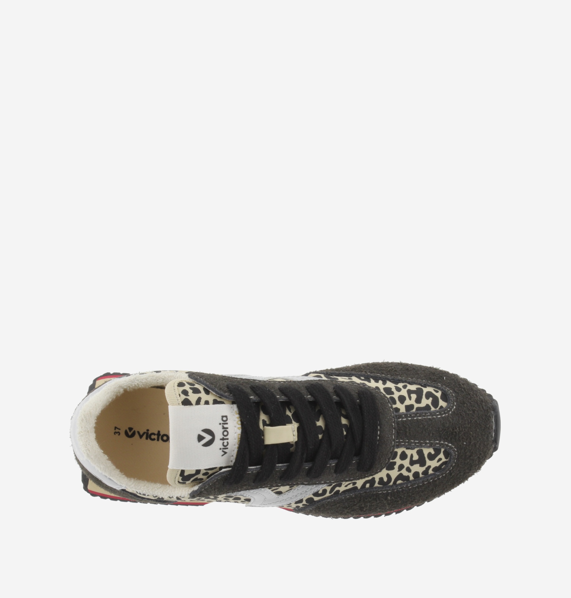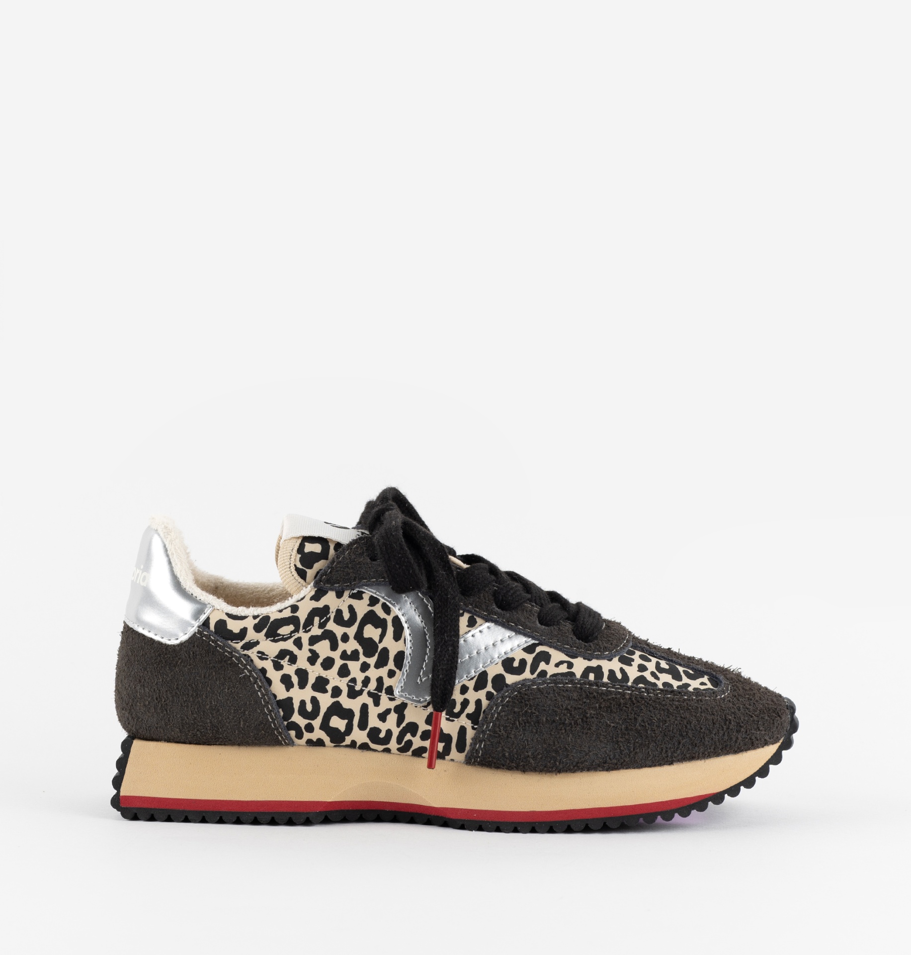 • Ténis Victoria com padrão animal print em tons castanho e bege